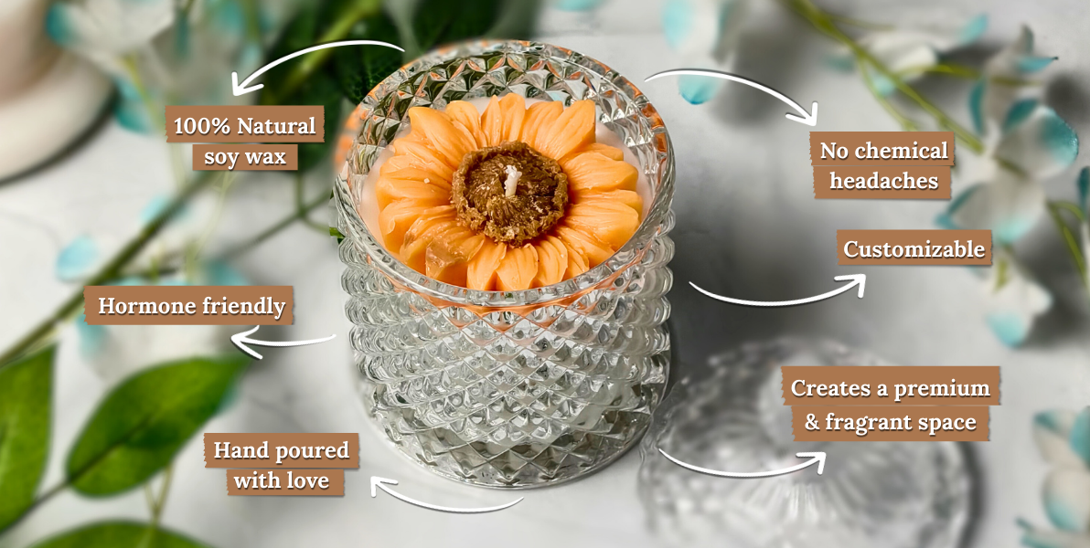 Our candles are crafted from 100% natural soy wax, ensuring a cleaner burn and an eco-friendly experience.