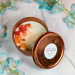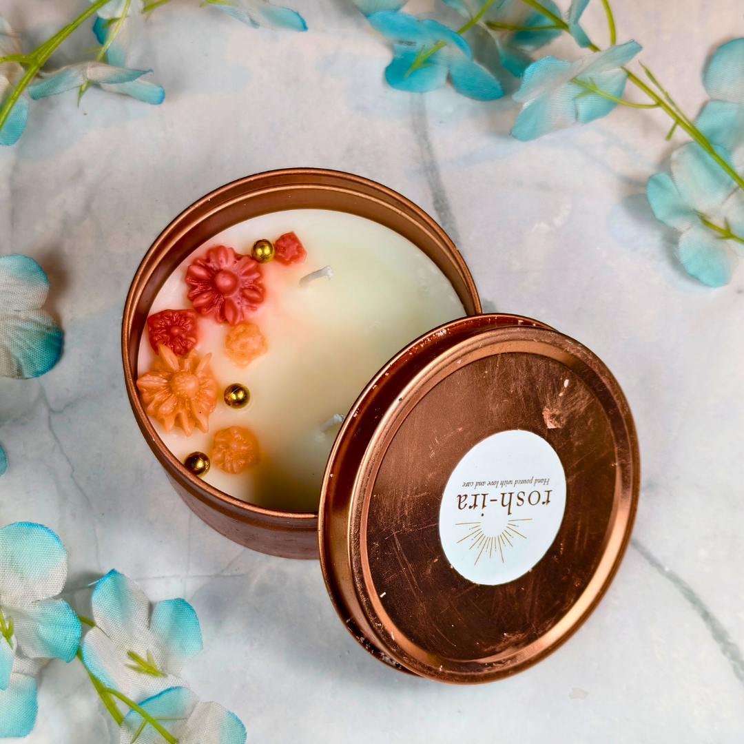 Earthy and elegant, Aranya is a copper tin jar candle topped with delicate flowers. A blend of rustic charm and festive luxury, it’s perfect for mindful gifting, cozy spaces, and creating a warm festive ambience.
