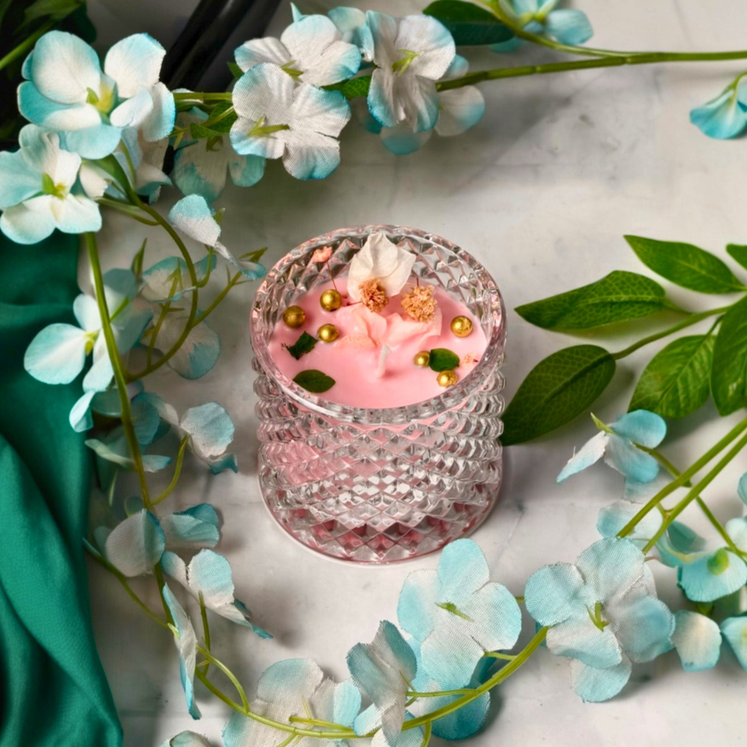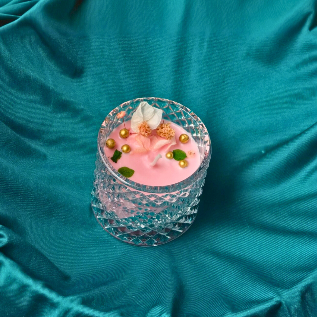 Experience luxury with our Sheesh Mahal Candle, hand-poured with premium soy wax and topped with elegant floral decorations. The intricate glass design reflects light beautifully, creating a regal ambience in any room. Perfect for gifting, home styling, or self-care rituals, this candle offers a harmonious blend of fragrance and sophistication.